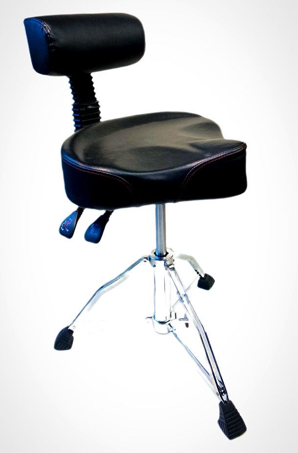 Seu design inteligente oferece o melhor dos dois mundos: um assento tipo selim, projetado para abraçar seu corpo enquanto você toca, e um encosto ergonômico que proporciona o suporte necessário para horas de ensaio ou apresentações épicas. Sente-se, relaxe e permita que a música flua de você com total conforto e confiança.